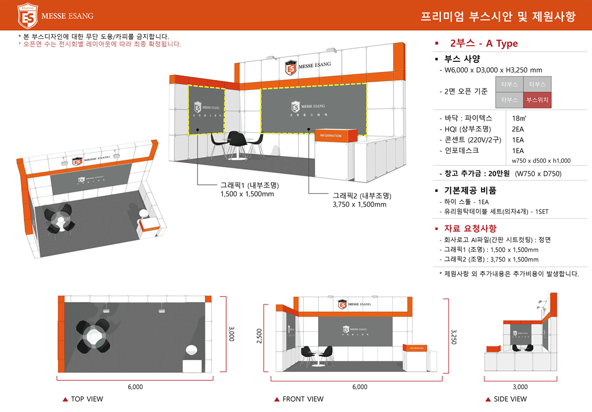 가. 스피커 등 음향기기는 지상으로부터 1m이하로 설치하고 방향은 자사 부스 내로 향하게 하여 설치해야 한다.